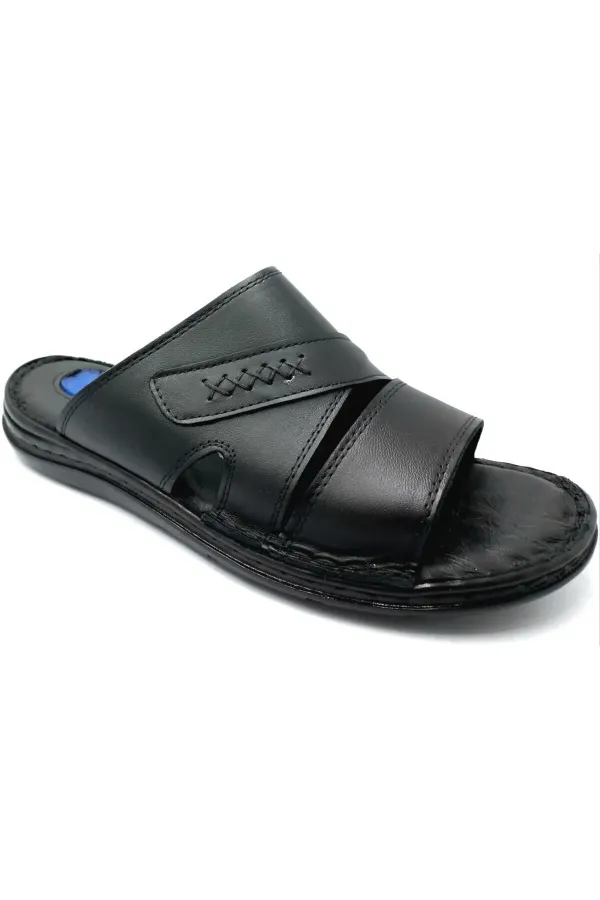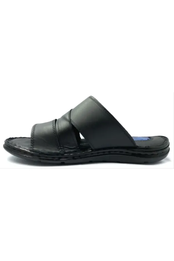 251 Siyah Erkek Jelli Kapalı Hakiki Deri Terlik